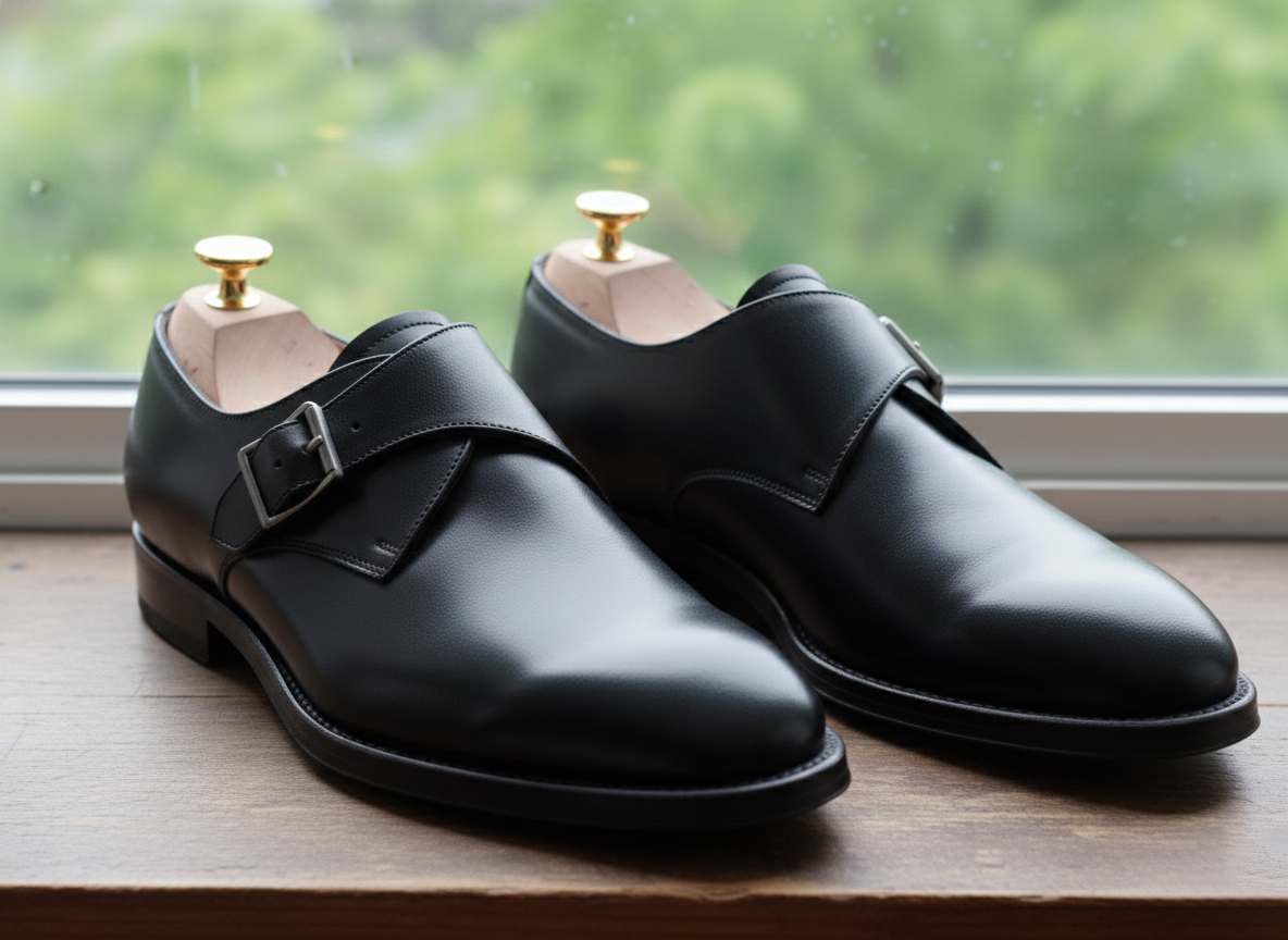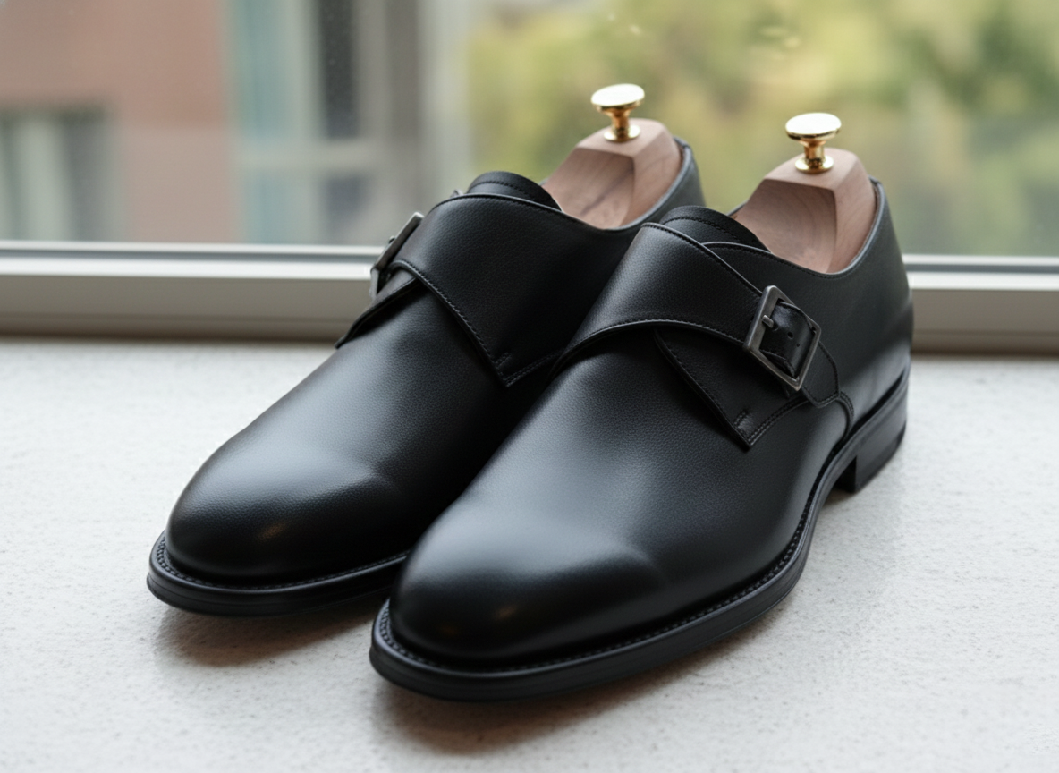 Italian Leather Black Monk Strap Shoe: