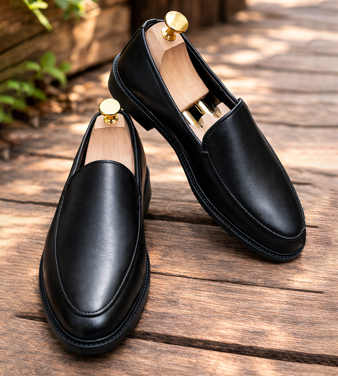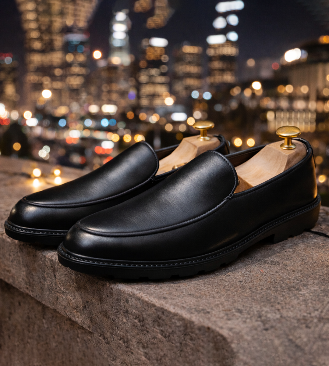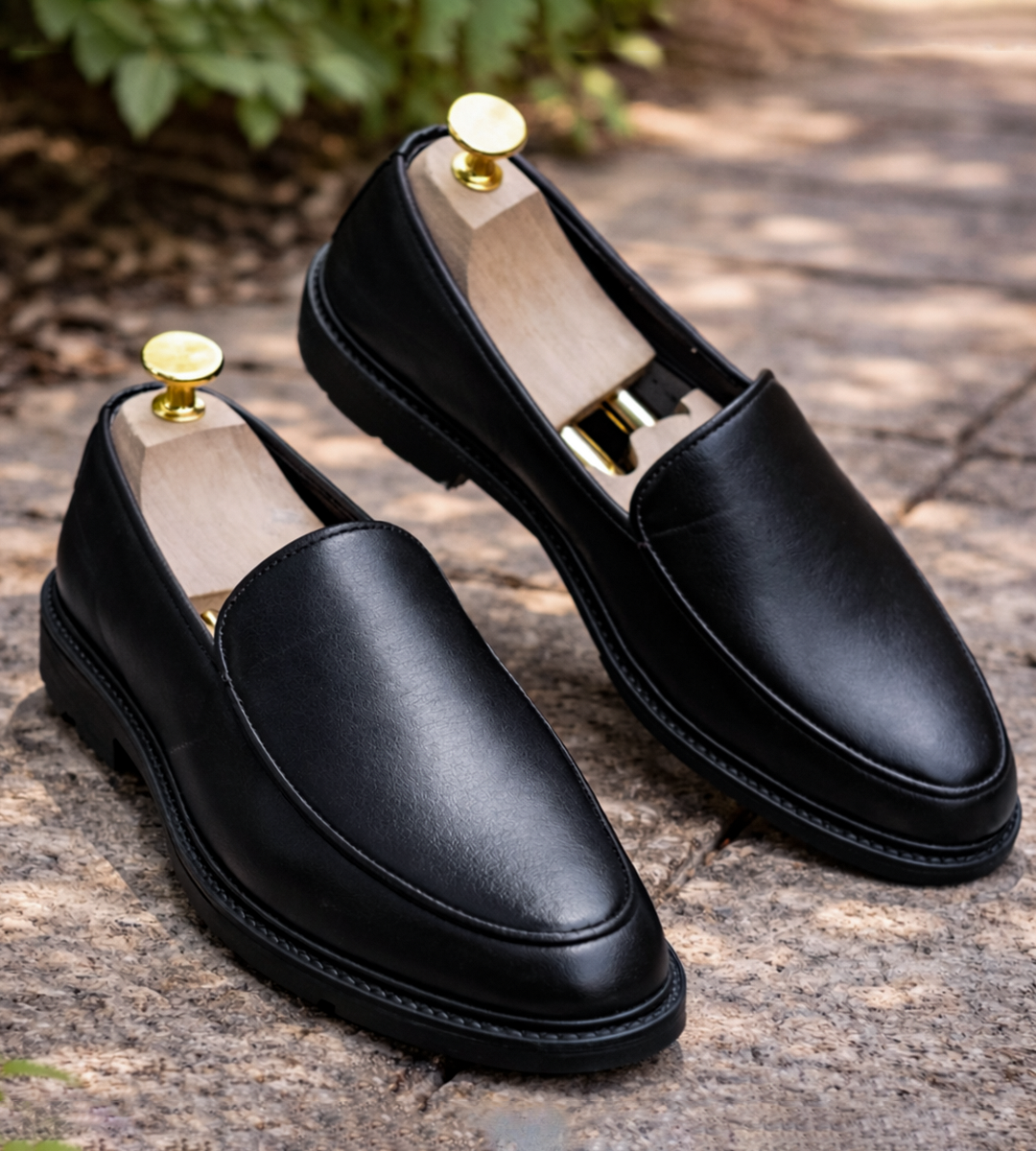 Men’s Elegant Moc Toe Slip-On Shoes. Designed with a classic moc-toe stitch and a sleek finish, they offer a perfect blend of comfort and sophistication. The easy slip-on design ensures quick wear, while the cushioned insole and durable sole provide all-day comfort. Ideal for office, casual outings, or semi-formal occasions.